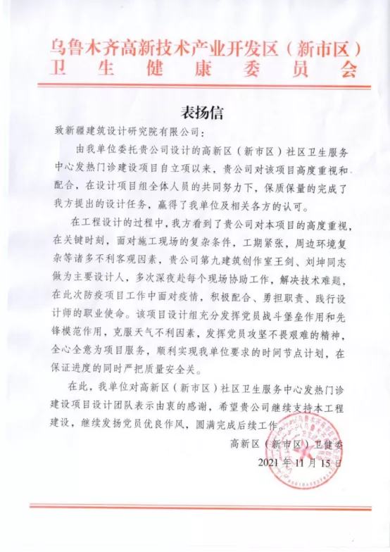 項目設(shè)計組充分發(fā)揮黨支部戰(zhàn)斗堡壘作用和黨員先鋒模范作用,克服天氣等不利因素,全心全意為項目服務(wù),切合實際的站在建設(shè)單位角度出發(fā),順利實現(xiàn)衛(wèi)健委要求的時間節(jié)點計劃,在保證進度的同時嚴(yán)把質(zhì)量安全關(guān),贏得了相關(guān)各方的認(rèn)可。